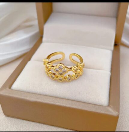 Gold Plated Adjustable Ring with Cubic Zirconia Stones for Women – Openable Design, Small Stones on Sides, Modern Style, for Everyday Wear, Party, and Gifting