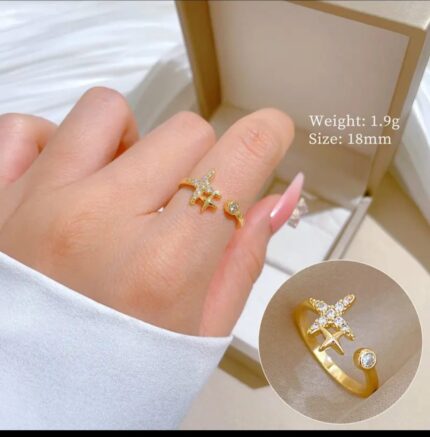 Gold Plated Star Shaped Ring with Diamond for Women, Modern Fashion Jewelry for Party and Everyday Wear