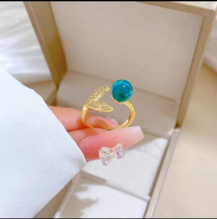 Gold Plated Ring with Blue Stone Leaf Design for Women – Modern Fashion Jewelry for Everyday
