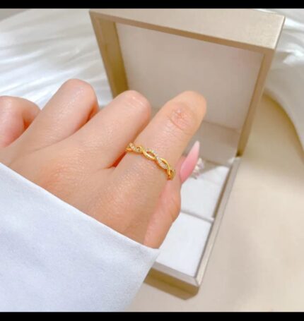 Gold Ring with Diamond Studs and Twist Design for Women – Shiny Finish, Open-Ended Band, Jewelry for Everyday and Formal Wear
