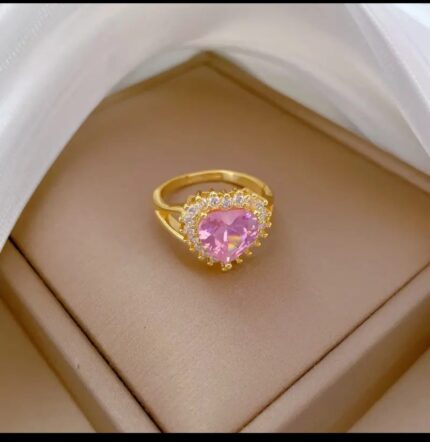 Gold Ring with Heart-shaped Pink Gemstone and White Gemstone Accents for Formal Occasions