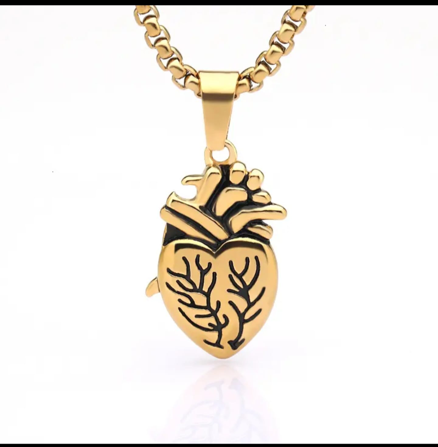 Make a bold and artistic statement with this anatomical heart gold pendant necklace. Featuring a unique heart design inspired by anatomical details, this piece blends creativity with modern style for a standout look.
