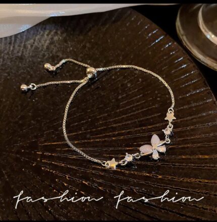 The sparkling butterfly charm enhances its beauty, while the dangling bead detail adds a unique and stylish finish. Its stretchable design ensures a comfortable fit, making it perfect for everyday wear or special occasions.
