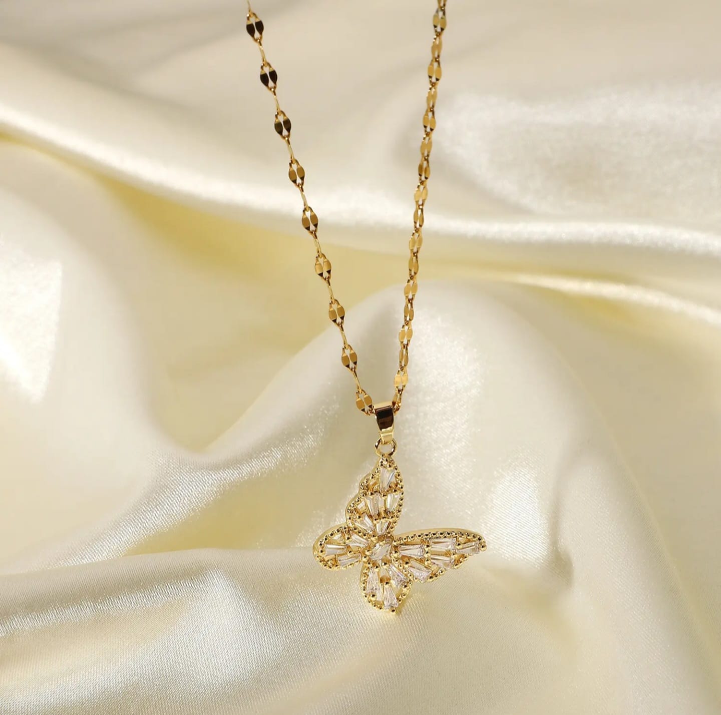 Gold Butterfly Necklace for Women – Delicate Crystal Pendant Chain for Girls Party Fashion Accessories