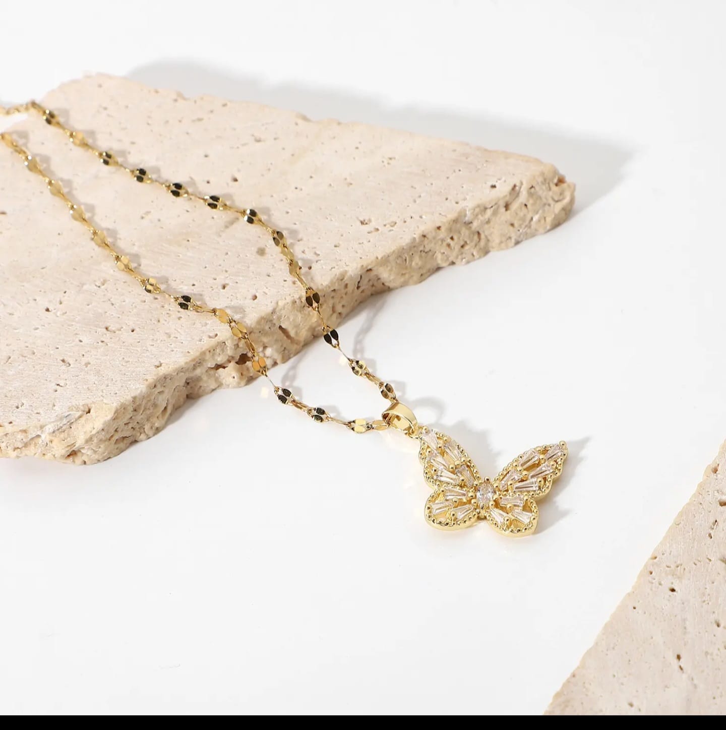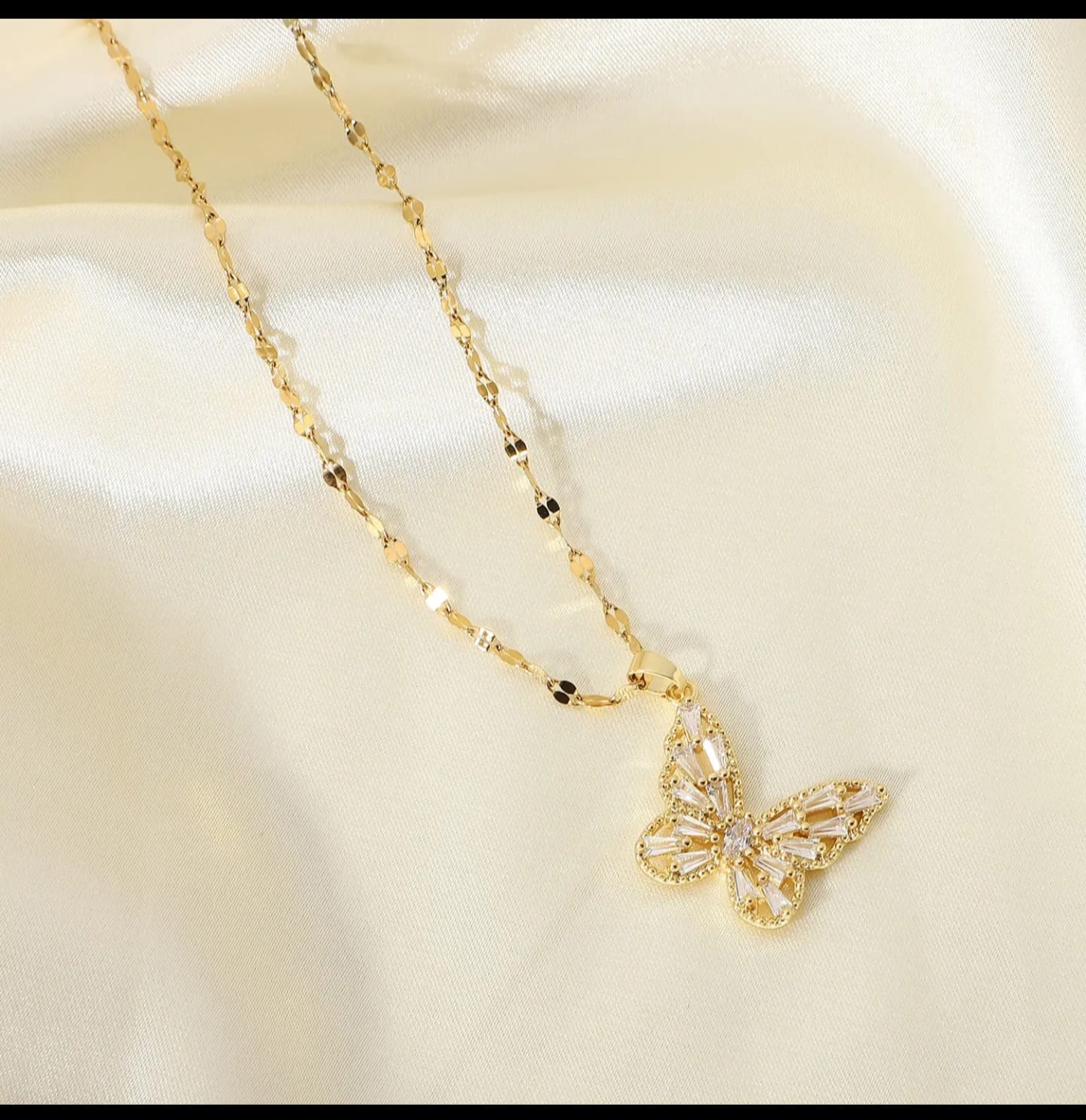 gold butterfly necklace, crystal necklace, women’s necklace, girls necklace, fashion jewelry, party wear necklace, daily wear necklace, gold plated necklace, butterfly pendant, gift for her, necklace for women, trendy necklace, delicate necklace, crystal jewelry, gold chain necklace