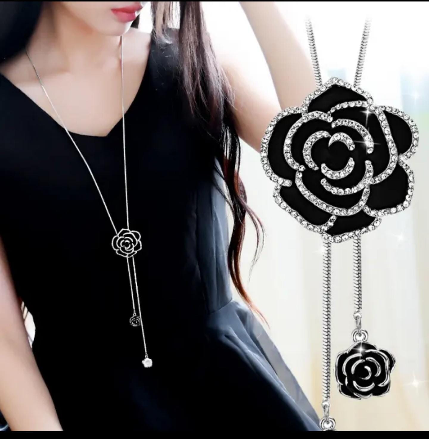 Embrace timeless elegance with this crystal rose flower pendant necklace. Designed with a beautifully detailed rose motif, the pendant is adorned with shimmering crystals that highlight every petal with a radiant sparkle.