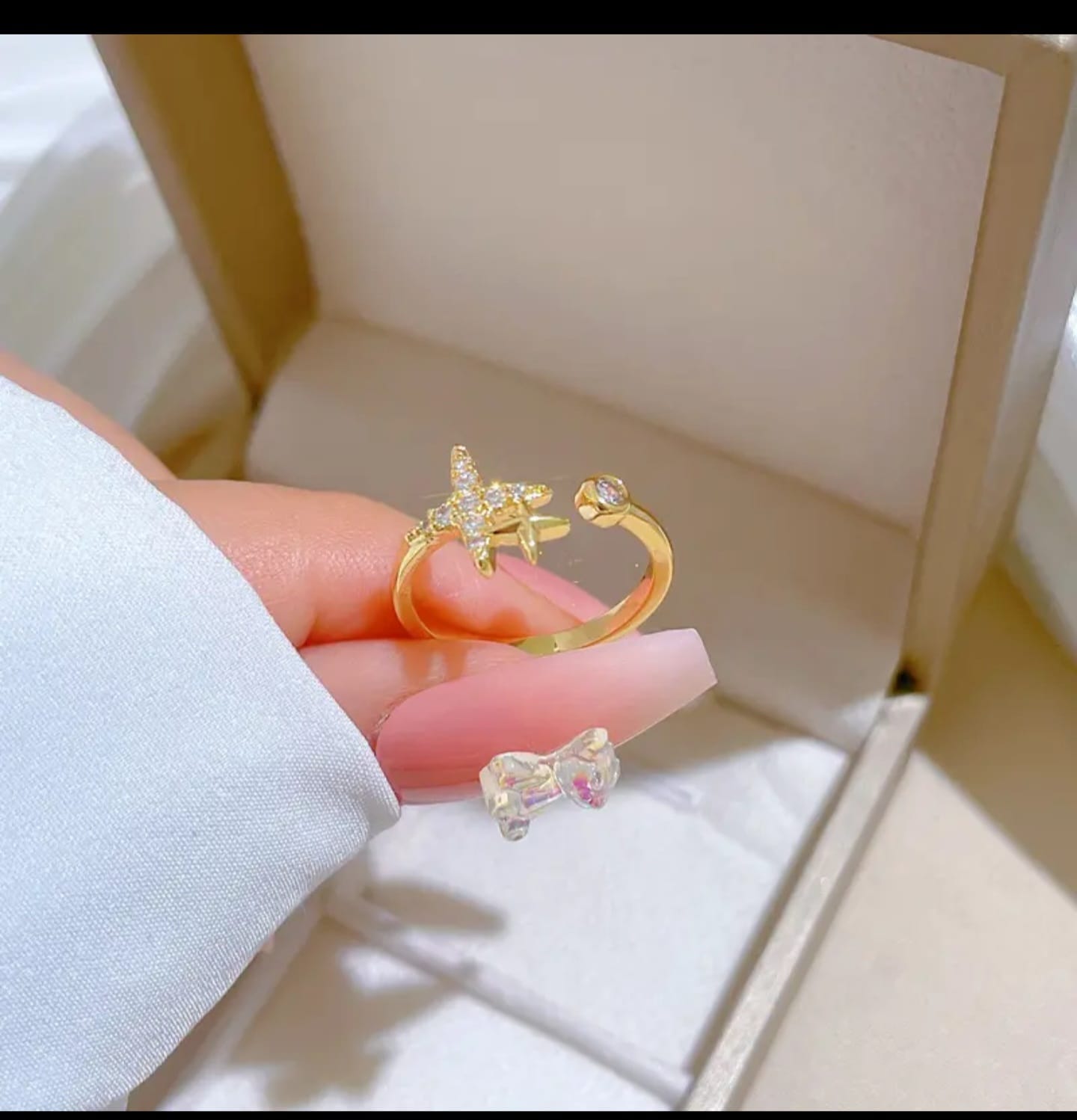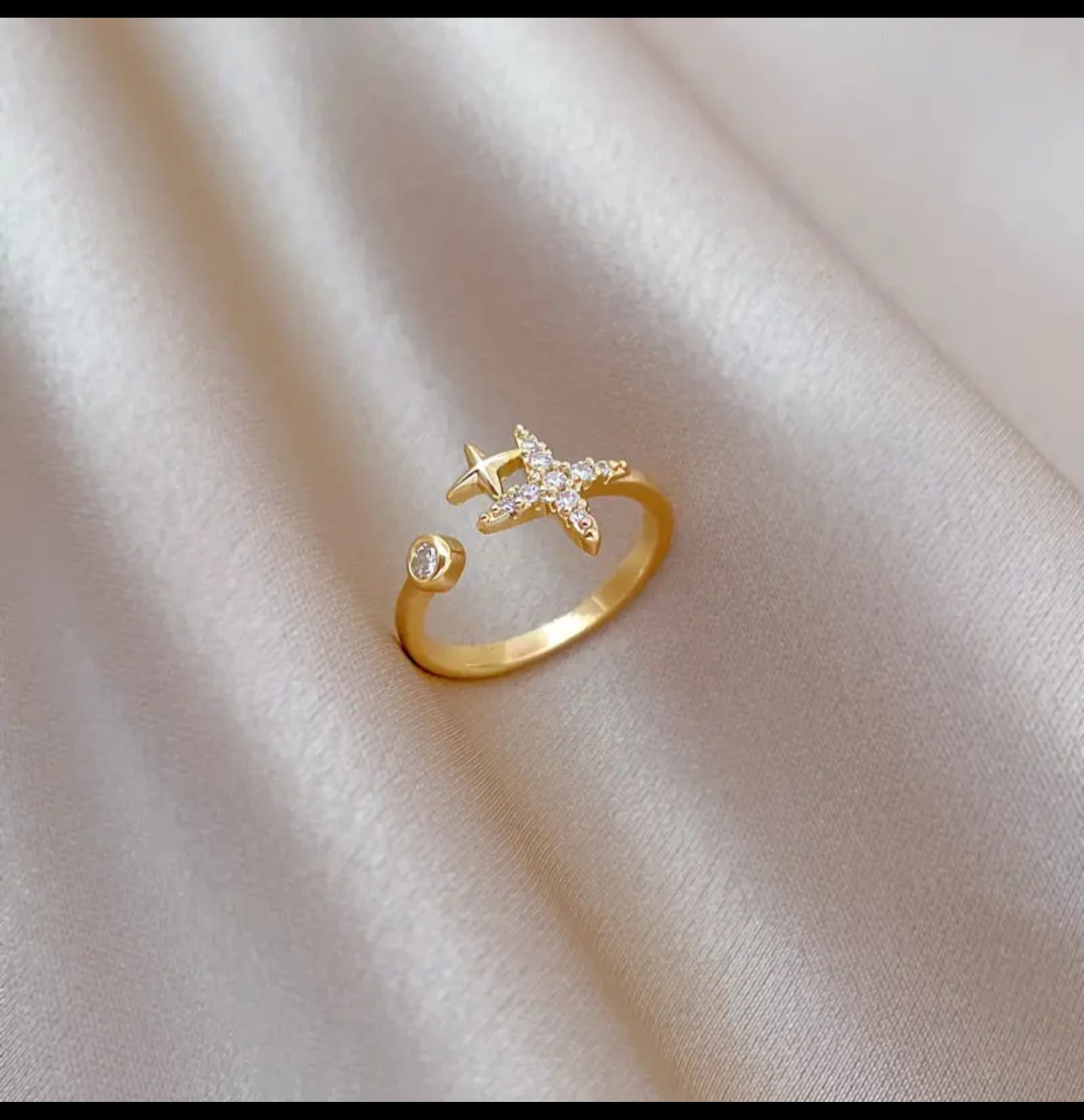 gold plated star ring, diamond set ring for women, modern fashion jewelry, star shaped ring with crystal, open band gold ring, fashionable women’s ring, party and everyday wear ring, sparkling star design jewelry