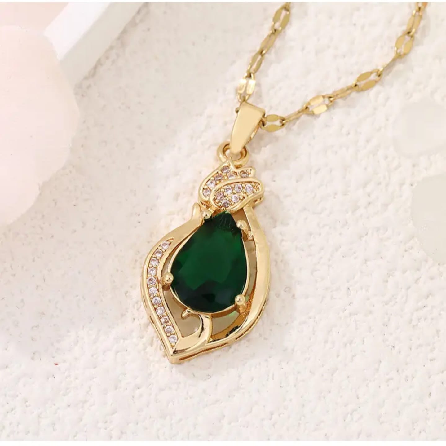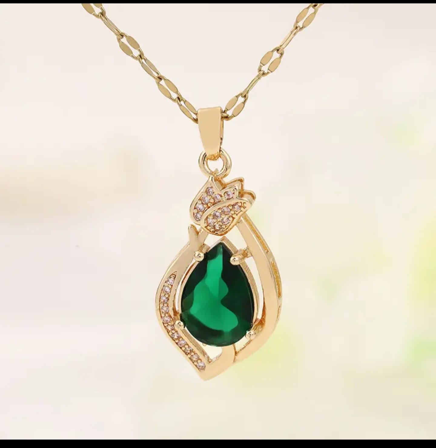 This stunning gold plated pendant necklace is a beautiful addition to any jewelry collection. Featuring a vibrant green stone, the pendant is intricately designed with sparkling accents, making it ideal for festive occasions, weddings, or as a thoughtful gift. The necklace boasts a secure and comfortable clasp, ensuring it stays securely in place throughout the day or evening. Crafted with precision, this piece offers a touch of elegance and sophistication, enhancing your traditional or contemporary attire. The gold plating provides a radiant shine and lasting durability, making it a cherished piece for years to come. Itβs a versatile accessory that complements various necklines and outfits, adding a pop of color and glamour to your look. This necklace is perfect for gifting to loved ones on special occasions, symbolizing your affection and appreciation. Care for your necklace by avoiding contact with harsh chemicals and storing it in a cool, dry place.