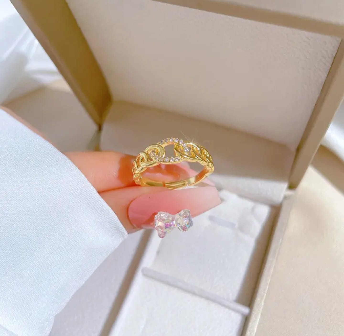 Gold Plated Chain Ring with Small Stones for Women – Jewelry for Parties and Gifting
