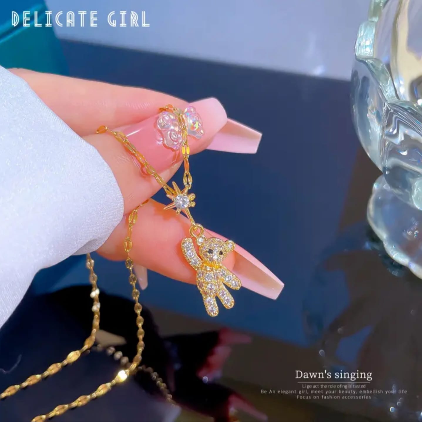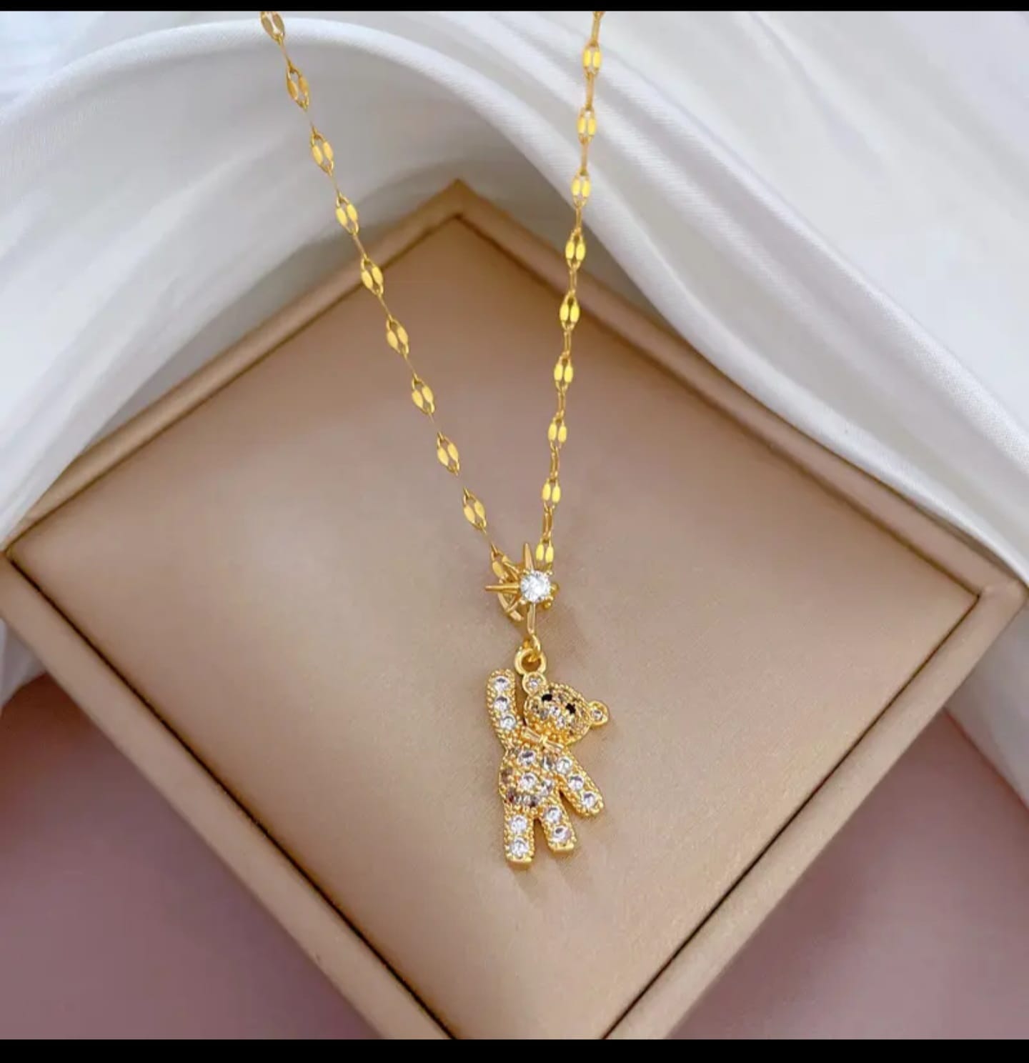 gold plated necklace, teddy bear necklace, cubic zirconia necklace, women’s necklace, girls necklace, gift for her, party wear necklace, daily wear necklace, gold chain necklace, fashion jewelry, artificial jewelry, necklace for girlfriend, birthday gift for girls, anniversary gift for women, gold plated chain
