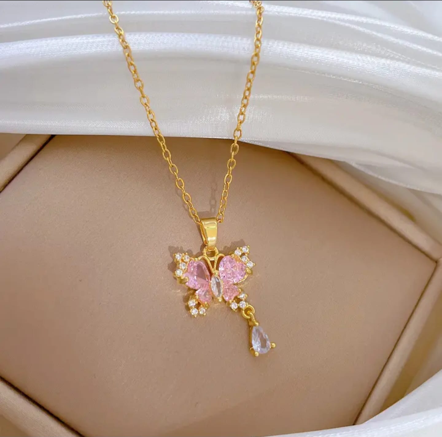Be the first to review “Pink Butterfly Necklace for Women – Gold Plated Pendant with Crystals for Girls Fashion Jewelry”
