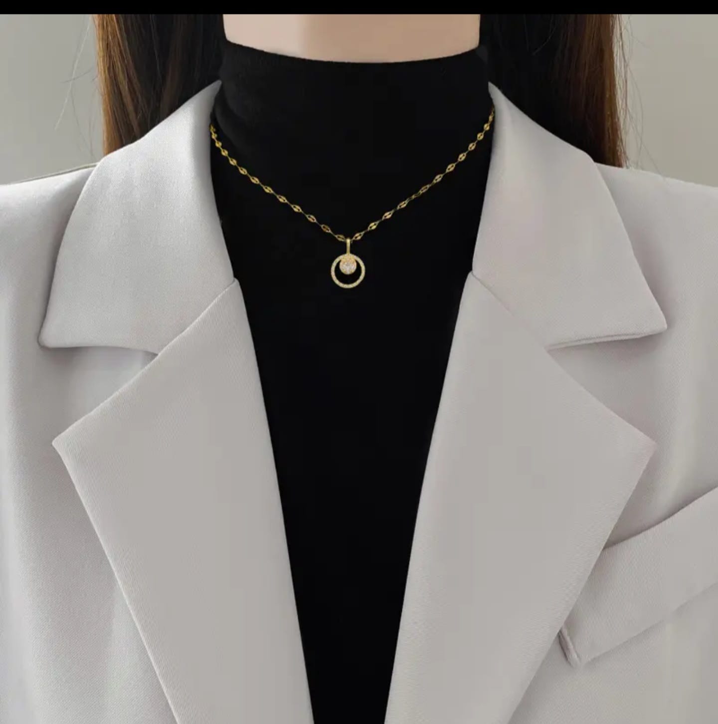 gold plated necklace, necklace for women, cz necklace, gold necklace, daily wear necklace, gift for her, round pendant necklace, fashion jewelry, gold chain necklace, cubic zirconia jewelry, women’s fashion necklace, party wear necklace