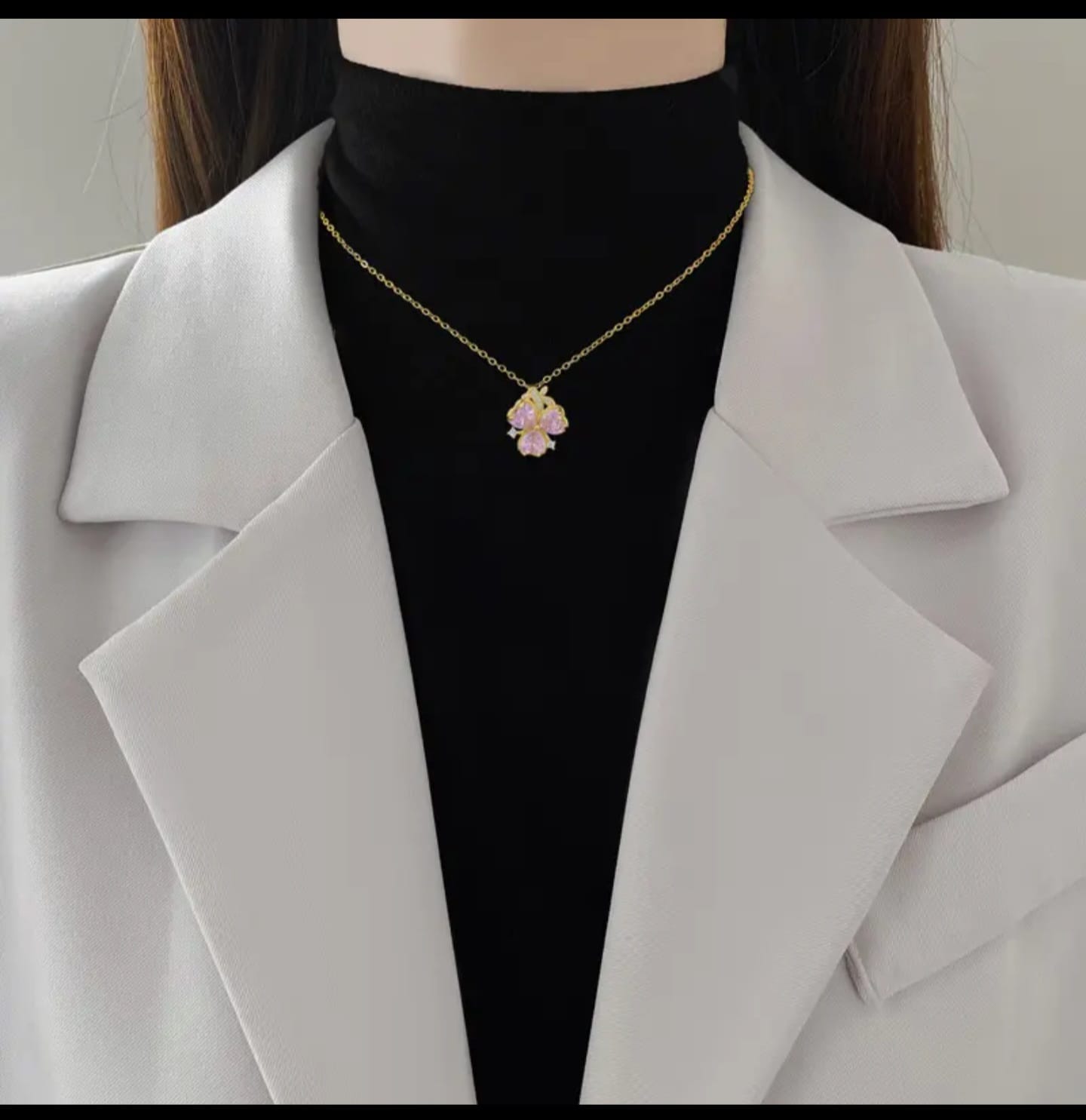 This exquisite pink butterfly pendant necklace is a delightful addition to any jewelry collection. Crafted with meticulous attention to detail, the pendant features a charming butterfly design adorned with sparkling pink stones, set in a radiant gold plating. The delicate chain complements the pendant beautifully, creating a harmonious and eye-catching piece. Ideal for gifting to loved ones or as a treat for yourself, this necklace adds a touch of elegance to both casual and festive outfits. The secure clasp ensures comfortable and worry-free wear throughout the day. This floral inspired necklace is perfect for adding a pop of color and personality to your look, making it a versatile accessory for any occasion. Itβs a beautiful way to express your individuality and style, and is sure to become a cherished piece in your jewelry box. The gold plating provides a lasting shine and protects against tarnishing, ensuring the necklace remains beautiful for years to come.
