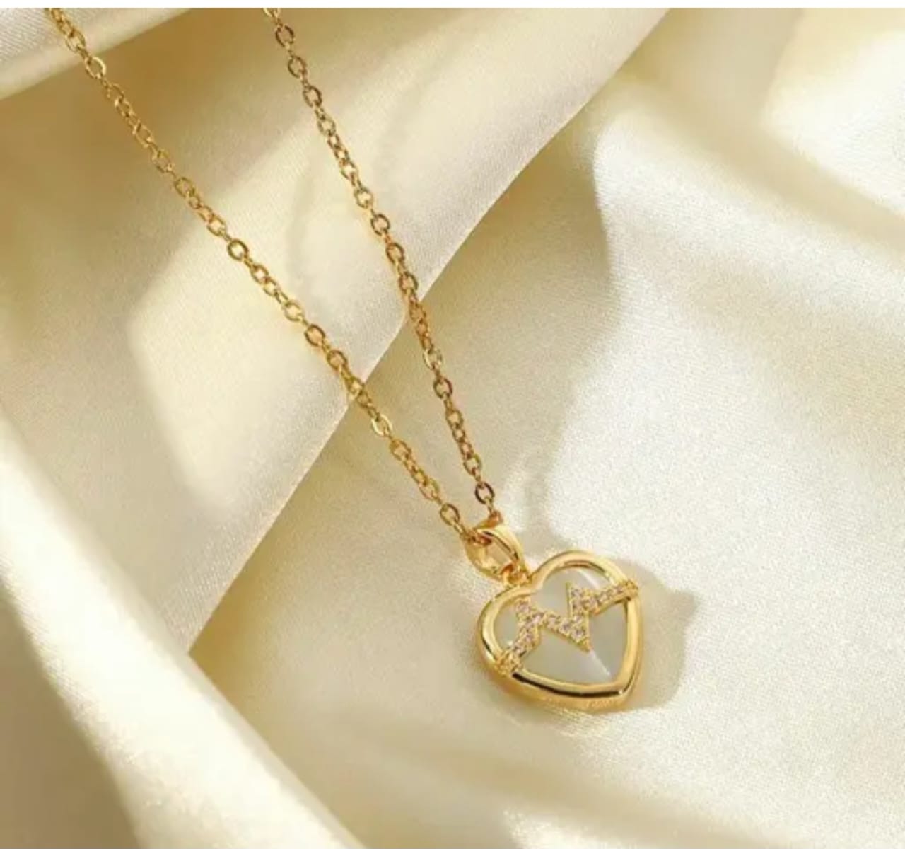 The gold-toned finish adds a touch of luxury, while the subtle crystal accents enhance its shine and charm. Perfect for everyday wear or special occasions, this necklace brings a meaningful and stylish element to any outfit.