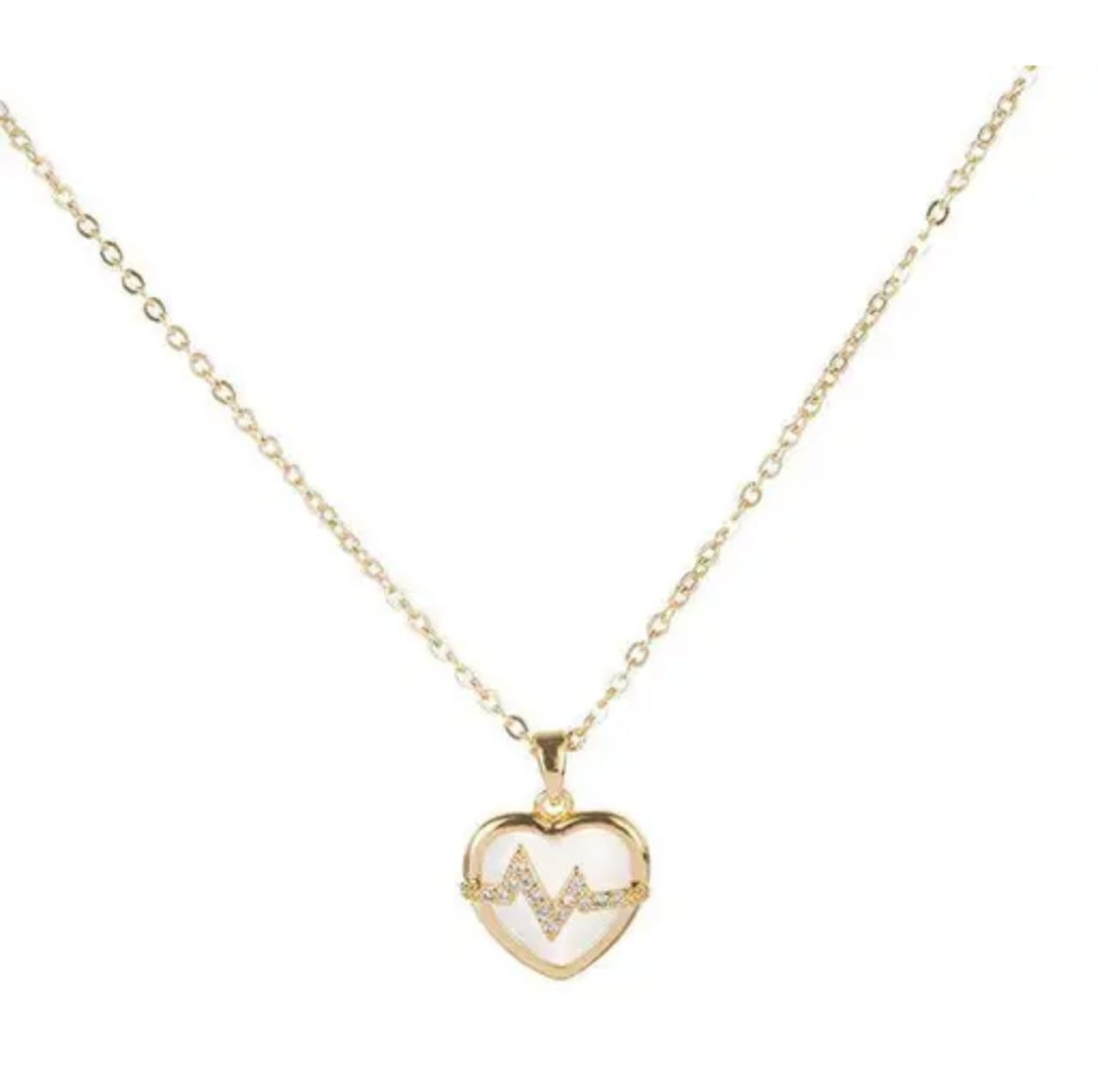 Elegant gold heart necklace with a sparkling heartbeat design, perfect for a romantic and stylish look.