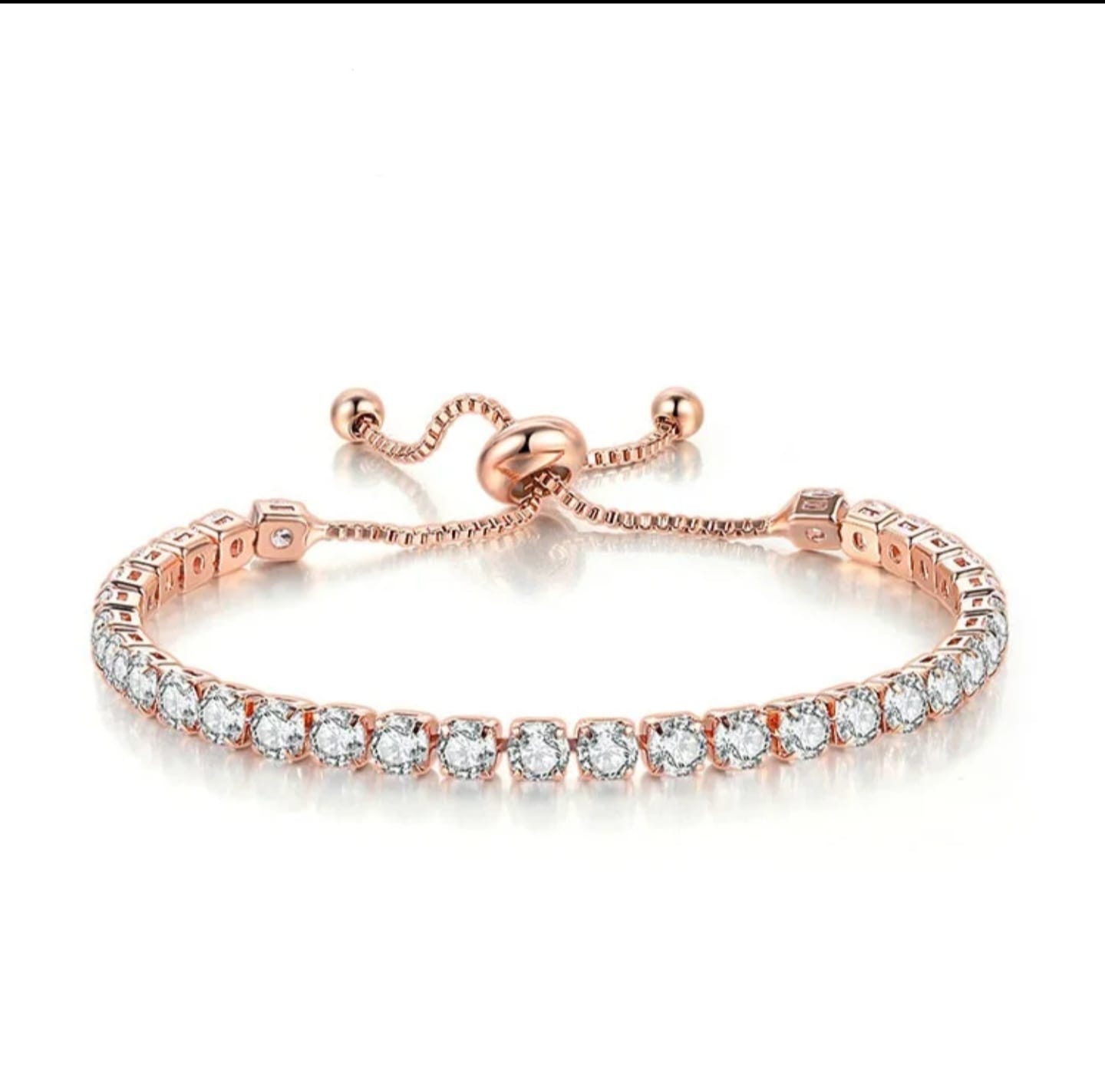 Elegant rose gold bracelet with sparkling crystalsβadjustable, classy, and perfect for any occasion.