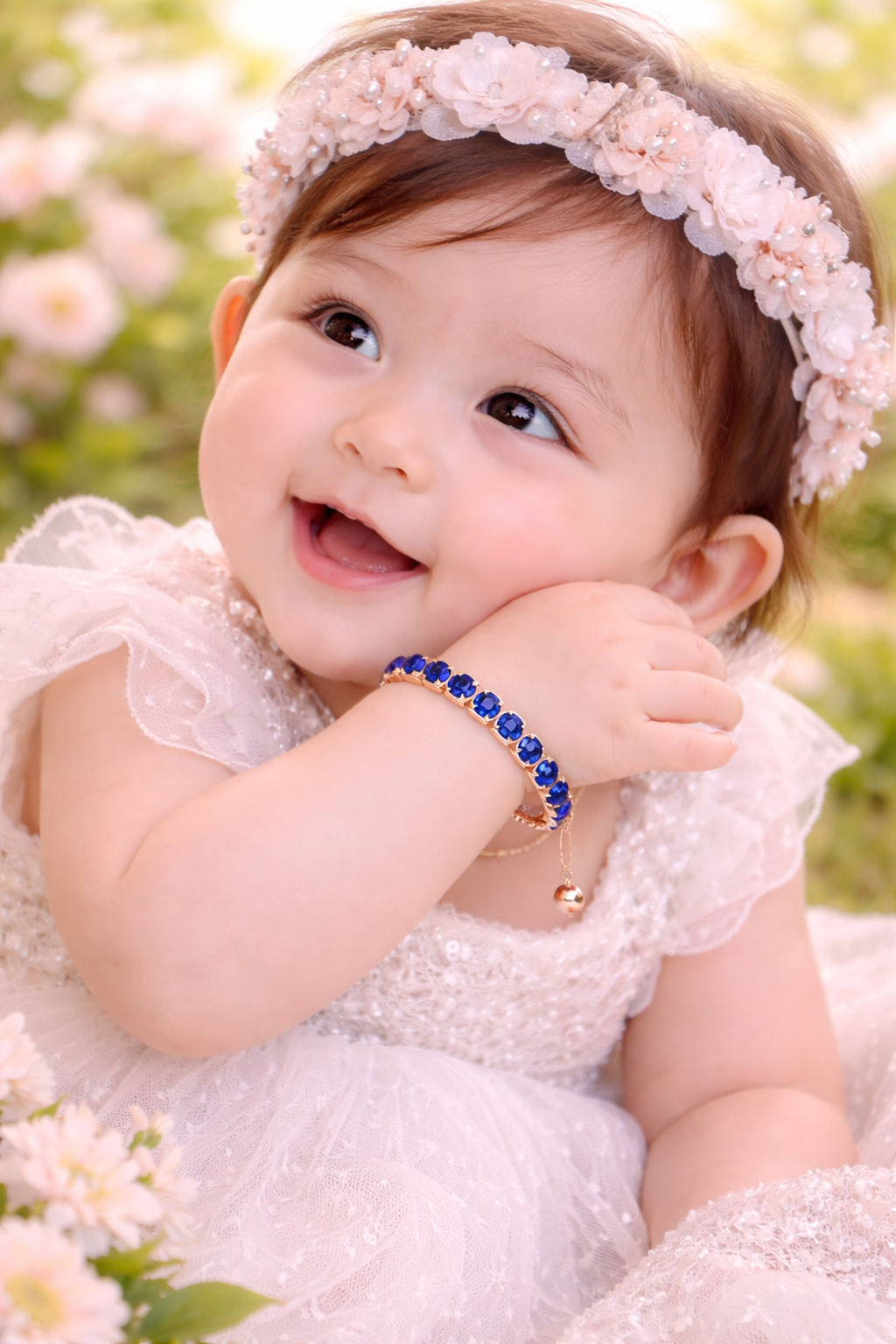 Elegant rose gold bracelet with sapphire blue crystalsβadjustable, classy, and eye-catching.
