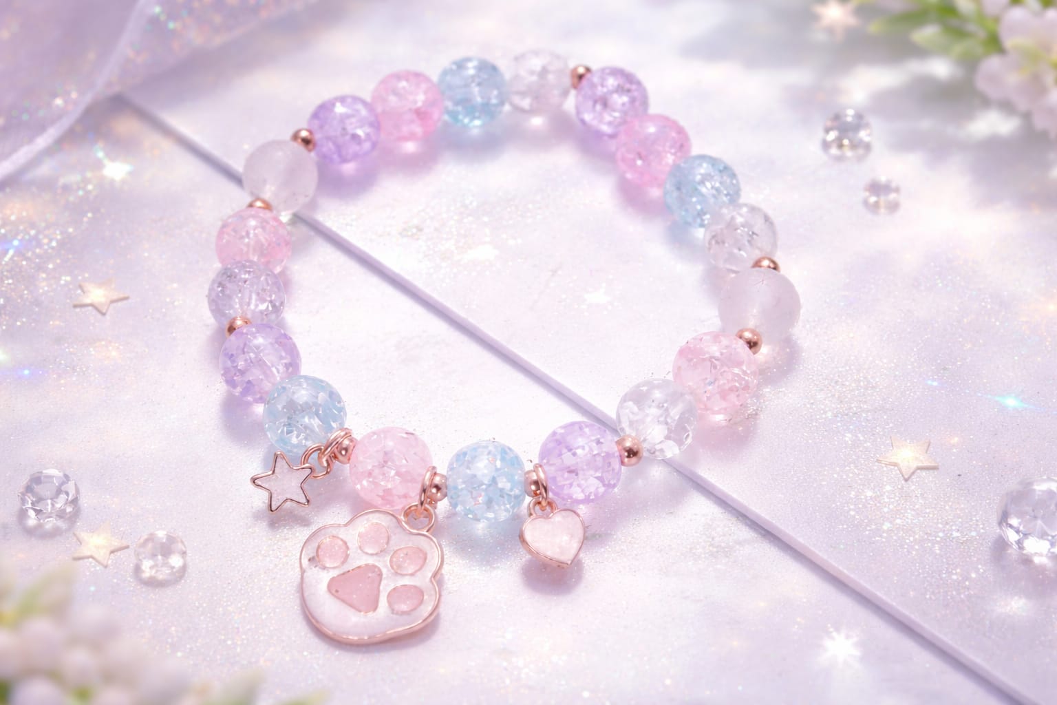 Cute pastel bead bracelet with paw, heart & star charmsβfun, stylish, and comfy to wear.