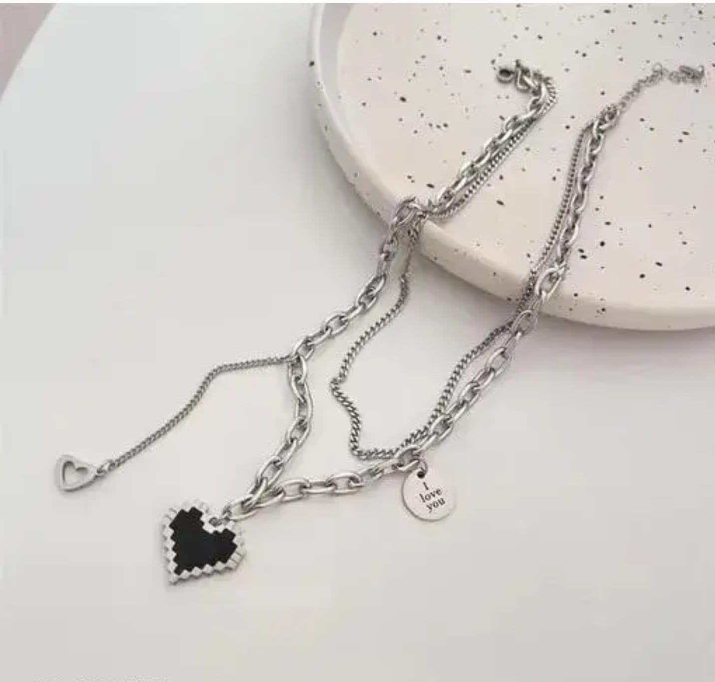Be the first to review “Pixel Heart Layered Silver Chain Necklace”