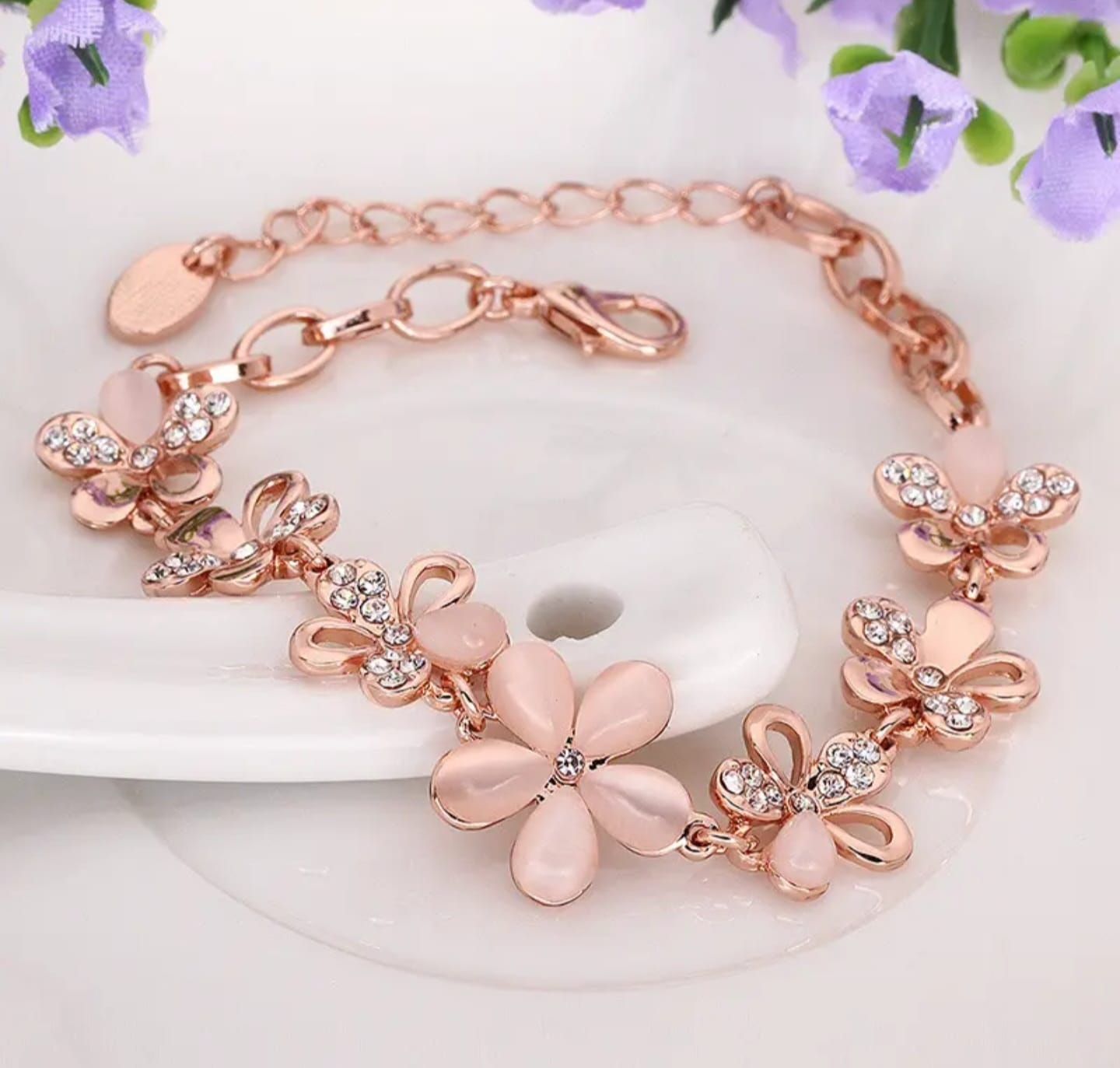 Be the first to review “Rose Gold Floral Crystal Charm Bracelet”