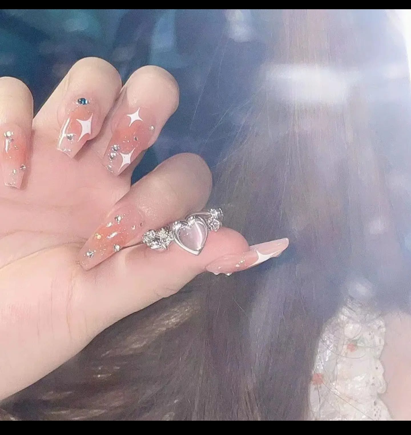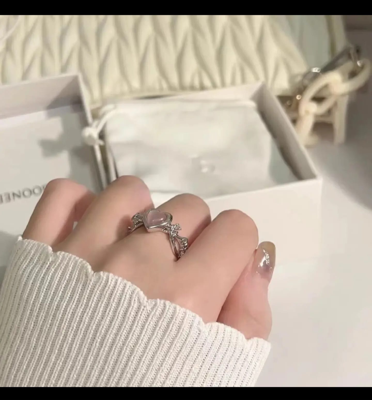 silver heart ring, pink heart ring, fashion jewelry for women, open-ended silver ring, heart-shaped silver jewelry, modern fashion ring, everyday wear jewelry, gift ring for women