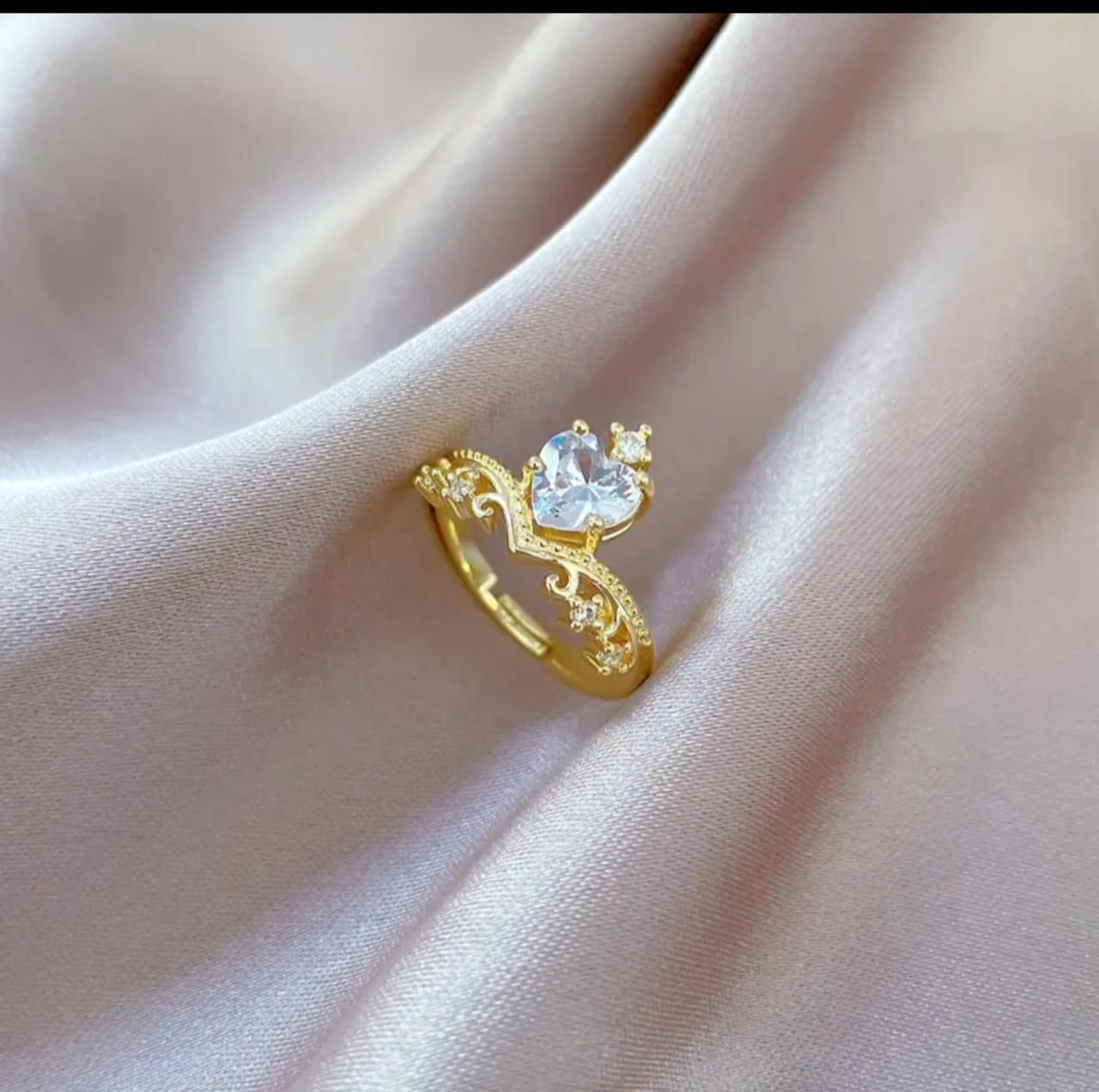 gold plated heart ring, heart shaped ring for women, fashion jewelry ring, ornate gold ring design, small stone heart ring, modern women’s jewelry, party wear ring, affordable gold jewelry