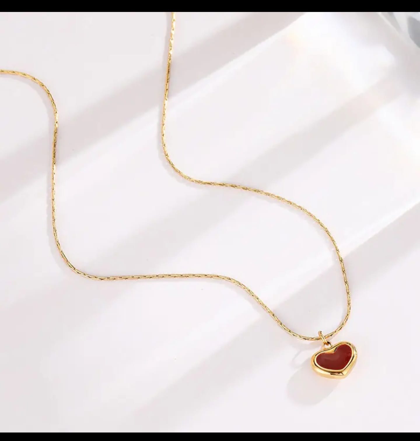 This charming red heart necklace is a delightful addition to any jewelry collection, perfect for adding a touch of love and vibrancy to everyday outfits. Crafted with a sleek gold-plated chain, the pendant features a beautifully shaped heart, creating a classic and timeless look that complements various styles. Ideal for daily wear, this necklace is lightweight and comfortable, making it suitable for all-day use. The vibrant red color of the heart adds a pop of color, making it a versatile accessory for both casual and semi-formal occasions. This necklace also makes a thoughtful gift for birthdays, anniversaries, or any special moment, expressing affection and care. The durable gold plating ensures long-lasting shine and resistance to tarnishing, maintaining its beauty over time. Itβs a simple yet elegant piece that effortlessly elevates any ensemble, adding a subtle touch of romance and sophistication. Care for your necklace by avoiding contact with harsh chemicals and storing it in a cool, dry place.